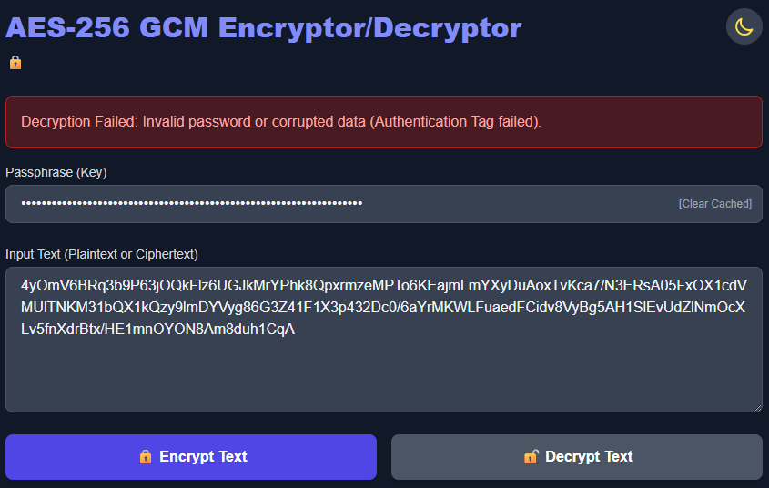 GCM256 Encryption/Decryption Webapp